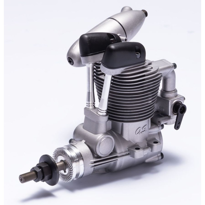 High-quality four-stroke O.S. Max FS-64V engine with glow ignition.