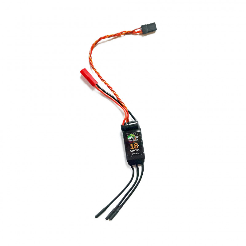 Volta Reve 18A is a 'reversible' brushless speed controller. It is capable of controlling the motor in both directions and can quickly switch between them. It can be used for so-called "4D flying", where the model can hover under the propeller down or fly backwards, etc. Compared to the "4D" variable pitch propeller, this system is much simpler and crash-proof. It would be best to prepare different flight conditions (if your transmitter allows it) so that you can switch between normal mode and 4D. Watch the video on this page to see how to do this.