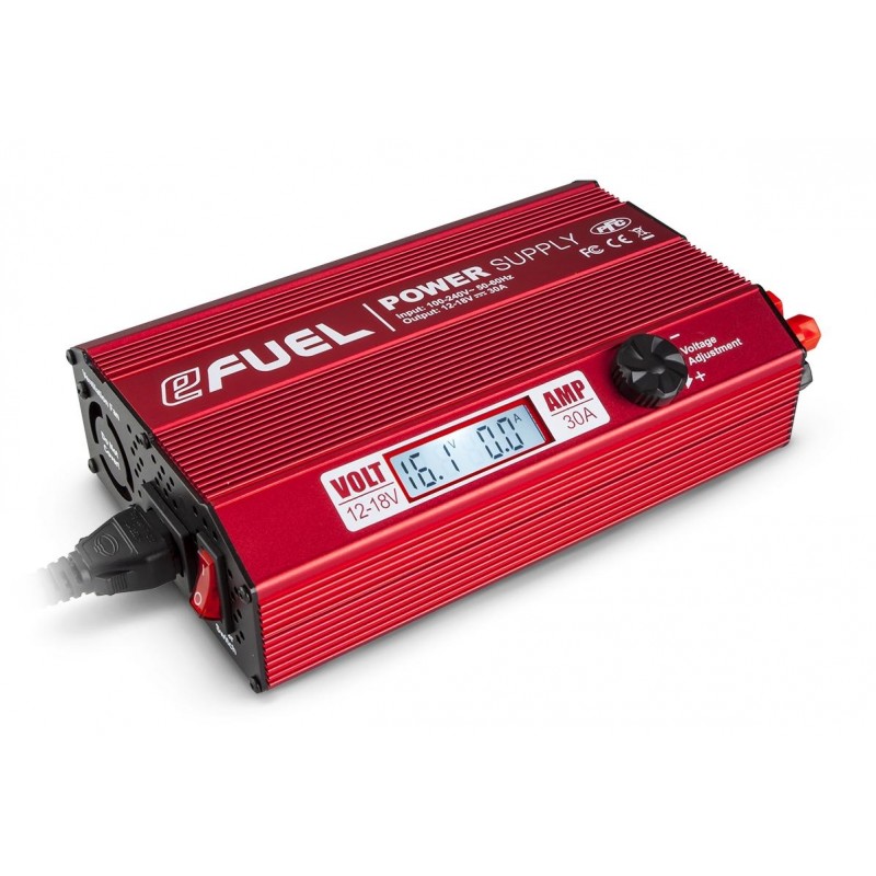 The eFuel power supply model has a convenient knob for voltage regulation in the range of 12 - 18 V. On the other hand, the readable LCD screen displays the current output voltage and current, which greatly facilitates the operation of the power supply. The universal AC 100 - 240 V power supply means that the power supply can be used all over the world without the need for network adapters.