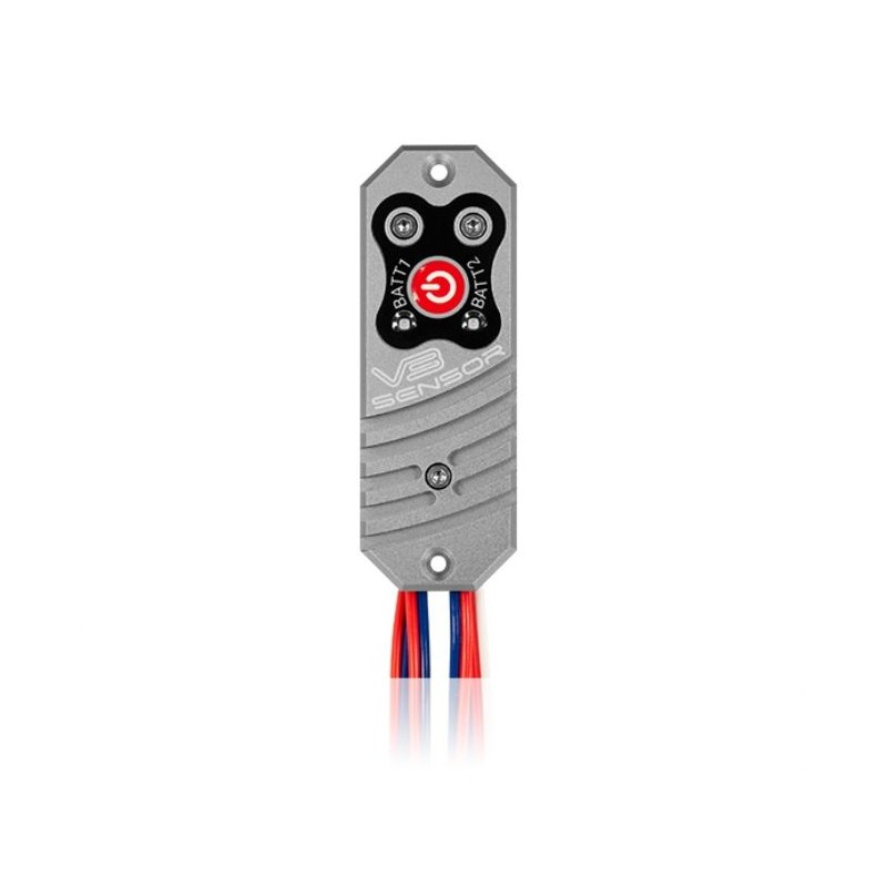 The PowerBox Sensor V3 is the third generation of the world-renowned PowerBox sensor. For nearly two decades, the PowerBox sensor has represented the standard for small and medium-sized models thanks to its compact format and versatility. By using the latest components, we were able to significantly reduce the size of the Sensor V3. For example, the envelope is now exactly half the size (11 mm compared to 22 mm). Nevertheless, the Sensor V3 still neatly fits into the aperture used by its predecessor. The introduction of a top-quality aluminum housing, machined and anodized, has brought a significant increase in the device's cooling capacity, resulting in a maximum continuous current capacity of the PowerBox Sensor V3 that is about 35% higher. In fact, the peak load capacity is twice as high: Sensor V3 can handle more than 20 A for a few seconds! The Sensor V3 offers two user-selectable output voltages: for normal servos it can be set to an adjustable 6.0 V, while an adjustable 7.8 V is available for HV servos - provided the batteries provide the higher required input voltage. The unit can be powered by four different battery types: LiPo, LiIon, LiFePo, NiMH. Ultra-bright RGB LEDs indicate the battery voltage; they light up in different colors to indicate the charge status of the batteries. CORE users also benefit from one special additional feature: both battery voltages can be displayed directly on the transmitter via telemetry.