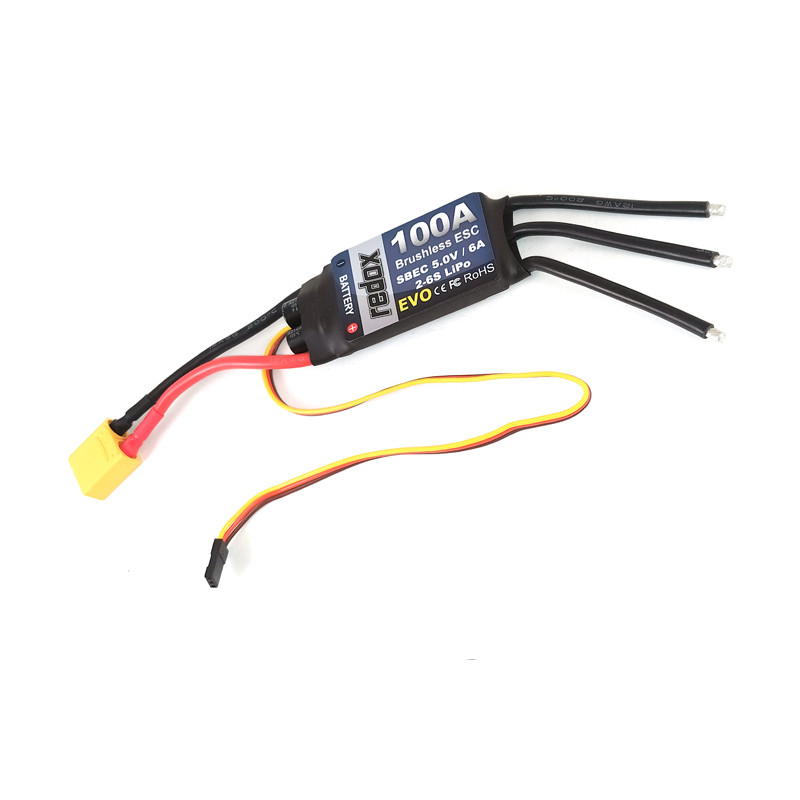 Universal Redox EVO 100A regulator for brushless motors designed for use in model aircraft and helicopters.