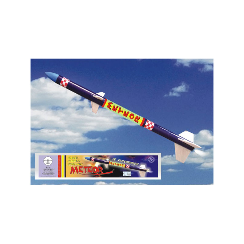 METEOR rocket is one of the larger parachute rockets offered on the market. The kit is in parts designed for self-assembly. The model is made of cardboard, balsa, styrodur and foil.