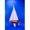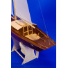 The kit includes: laser-cut plywood and machony parts needed to assemble the boat, hardware, steel cables, wooden mast, dacron sail, lead ballast, detailed instructions and stickers. The model is intended for intermediate as well as advanced boatbuilding modelers.