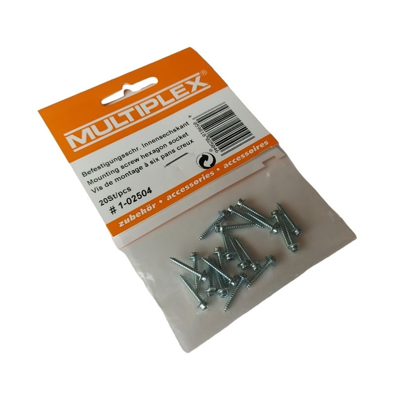 A steel screw used, among other things, for mounting servos. The allen key socket makes it easy to mount the servo in hard to reach places ( using a ball-point allen screwdriver )