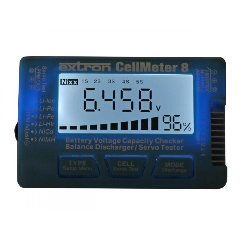 Cell Meter 8 is a multifunctional measuring device that can be used to measure batteries (including the voltage of individual cells). In addition, Cell Meter 8 can balance lithium batteries and test servos.