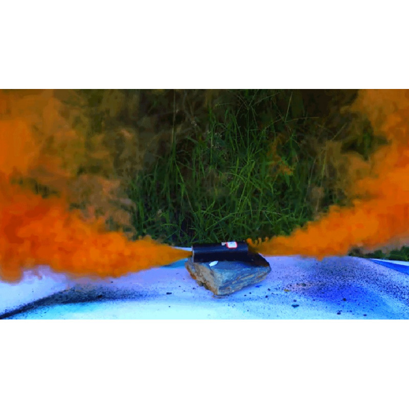The NICO Smoke candle produces thick smoke, which comes out of two outlets on opposite sides of the housing. Firing of the candle is done with a breakable ring (wire).