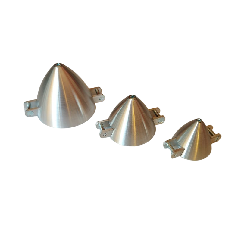 Precision-made Czech-made, aluminum cap for aircraft electric motors with folding blades.