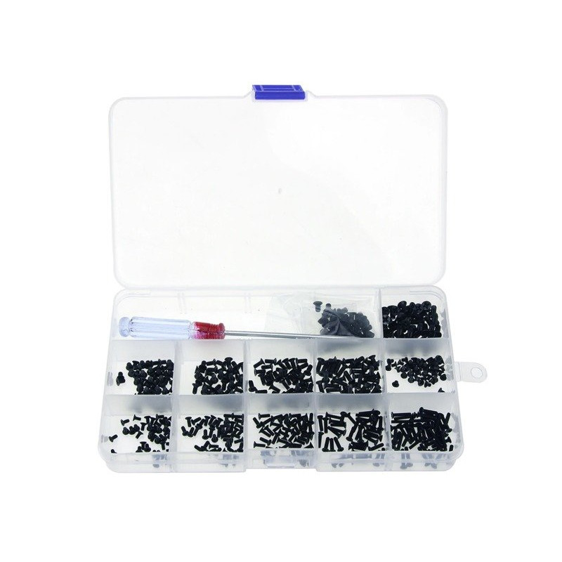 Set of 360 pieces of M2 / M2.5 / M3 black taper screws of different lengths.