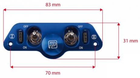 Two independent switches with individual power sockets in one housing. The switch is designed for combustion models, especially those with large glow engines and gasoline engines. Cables with JR plugs and JR / FUTABA sockets. Aluminum housing.