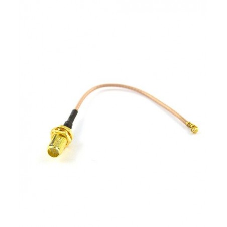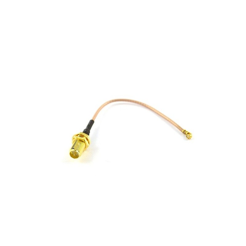 U.FL (IPEX) to RP-SMA jack transition with 100 mm cable.
