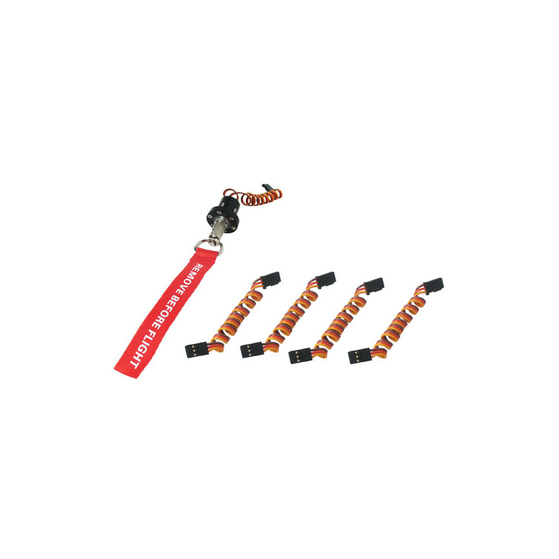 The regulator has four current sockets on the left side to which batteries (the manufacturer recommends Dualsky 2S 25C packs) are connected via special adapters, four stabilized current outputs, four connectors for connection to the receiver, a port for a fan (optional) and a switch port (optional).