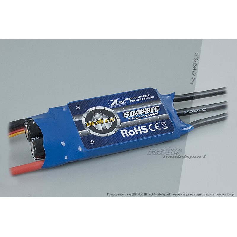 Z TW regulators of the Beatles series are designed for brushless motors used in models of airplanes and motor gliders. Z TW regulators of the Beatles series have the ability to change parameters using a transmitter or a programming card.