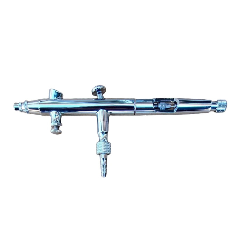 Jest to aerograf dwu-funkcyjny co oznacza, że przyciskiem regulujemy zarówno ilość podawanego powietrza (ruchy w dół i w górę) jak również ilość farby (ruchy do tyłu i do przodu).