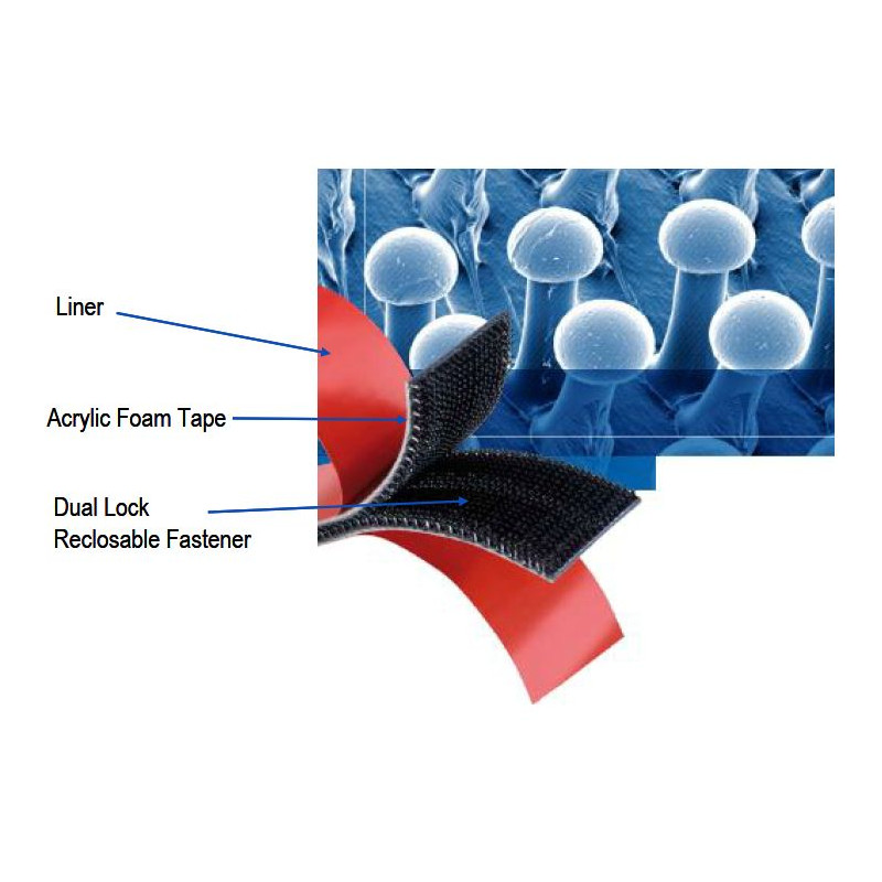 3M Dual Lock Reclosable Fastening Systems to zapięcia przeznaczone do mocowania elementów wykończeniowych w samochodach. Produkty mają poliolefinę w kształcie grzybka na ciągłym podkładzie poliolefinowym. Kiedy te grzybkowate łodygi są ściskane razem, zatrzaskują się na miejscu.