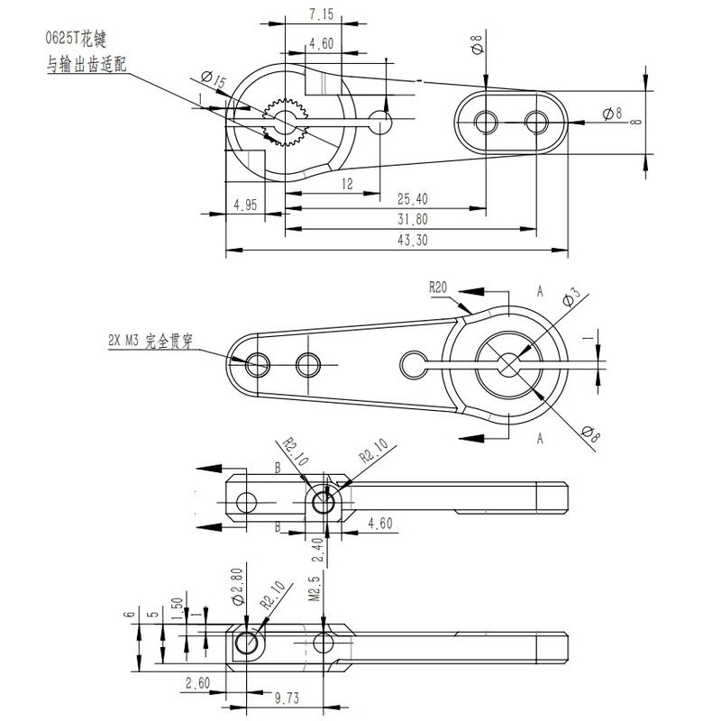 KST DŹWIGNIA ALU 43,3 mm / 25T-6 (0625.32) / (KST-4130)