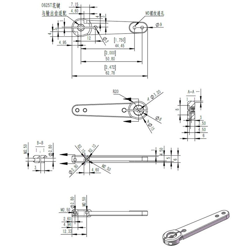 KST DŹWIGNIA ALU 62,8 mm / 25T-6 (0625.50) / (KST-4134)