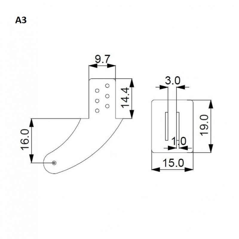 Laminatowa dźwignia steru wysokości, kierunku lub lotki do modeli latających.