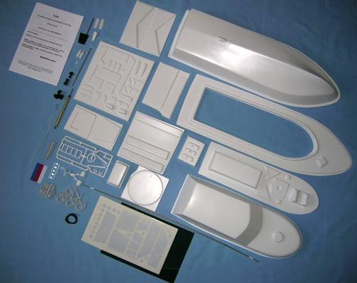 Model łodzi pożarniczej ZAR wyprodukowanej przez czeską firmę Vladyka, do samodzielnego złożenia i malowania, wykonana z tłoczonego tworzywa. W zestawie znajduje się: kadłub, wały napędowy, śruba napędowa, ster, komplet naklejek oraz drobne elementy imitujące wyposażenie pokładowe. Łódź dopuszczona do zawodów w klasie F4A.