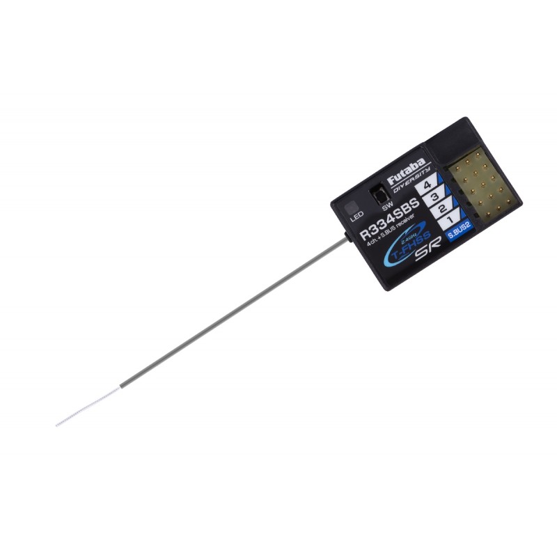 - Futaba R334SBS T-FHSS SR/T-FHSS 2,4GHz z telemetrią na magistrali S.BUS2 (4 kanały)