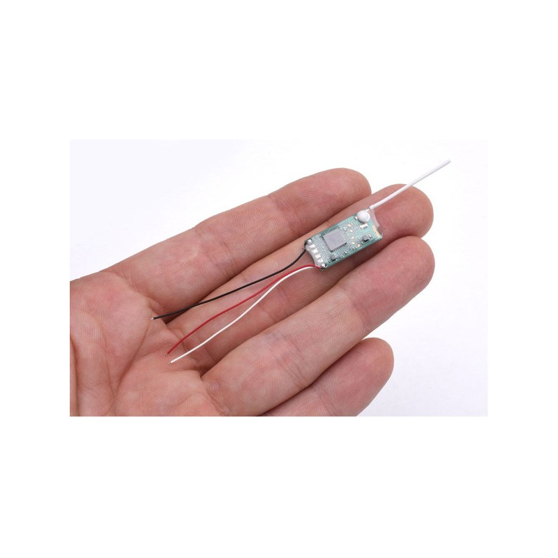 Futaba sześciokanałowy miniaturowy odbiornik systemu transmisji T-FHSS Air-2.4GHz bez telemetrii z ograniczonym zasięgiem (najmniejszy z odbiorników Futaba). Przeznaczony jest do użytku w mini dronach z jednostką sterującą komunikującą się po magistrali S.BUS lub w modelach samolotów typu indoor z serwami S:BUS lub klasycznymi (PWM). R3206SBM zapewnia do 6 klasycznych wyjść kanałowych PWM i 1 wyjście szeregowe S.BUS. Stany pracy odbiornika sygnalizowane są za pomocą diody LED. Brak pinów do bezpośredniego podłączenia serw. Należy przylutować przewody lub piny we własnym zakresie i zgodnie z indywidualnymi wymaganiami, a następnie włożyć odbiornik w koszulkę termokurczliwą.