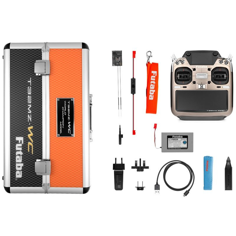Nadajnik T32MZ-WC w obudowie idealnie mieszczącej się w dłoni, wyposażony jest w precyzyjne sterowanie zwrotnicą z możliwością regulacji blokady/neutralnej, 10 przełączników, 4 suwaki, 6 cyfrowych trymerów i 2 obrotowe regulatory proporcjonalne. Do programowania para przycisków i duży, podświetlany, kolorowy dotykowy wyświetlacz LCD HVGA zapewniają łatwą orientację w intuicyjnym menu przy użyciu systemu operacyjnego Windows Embedded Compact 7. T32MZ-WC posiada pamięć na 30 modeli, którą można dowolnie rozszerzać za pomocą karty SD oraz szeroką gamę zaawansowanych funkcji miksujących dla samolotów akrobacyjnych, szybowców i helikopterów. Oprócz wyświetlania danych telemetrycznych na wyświetlaczu, w gnieździe słuchawki znajduje się głosowe wyjście telemetrii (nie wchodzi w skład zestawu). T32MZ-WC jest również wyposażony w gniazdo nauczyciel-uczeń, a także umożliwia programowanie i ustawianie serwomechanizmów S.BUS. Jest też odtwarzacz muzyki (dla plików audio WMA zapisanych na karcie microSD) oraz rejestrator dźwięku z mikrofonem.