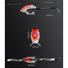 Zestaw helikoptera zawiera: kompletny zestaw części mechanicznych, silnik prądu przemiennego SUNNYSKY R80-7, 4 cyfrowe serwa, regulator obrotów 85A, łopaty wirnika i ogonowe, instrukcję budowy i konfiguracji.