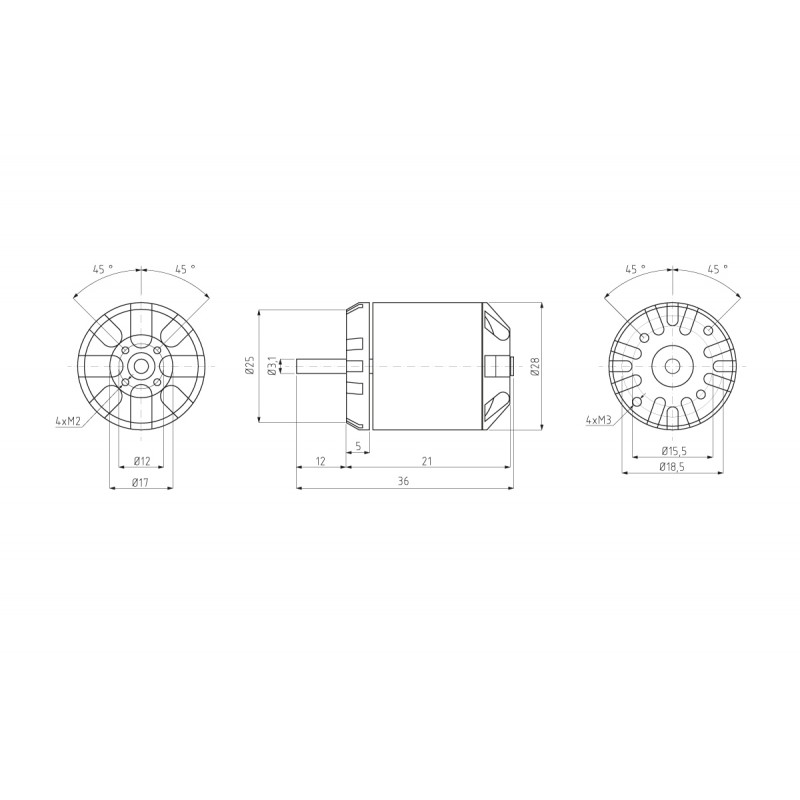 W zestawie: silnik z zalutowanymi konektorami, krzyżak, mocowanie z piastą, śruby, regulator obrotów