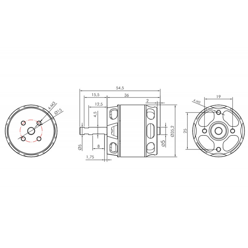 W skład zestawu silnika wchodzą: silnik z przewodami z lutowanymi pozłacanymi złączami 3,5mm, zestaw do montażu tylnego, śruby montażowe.
