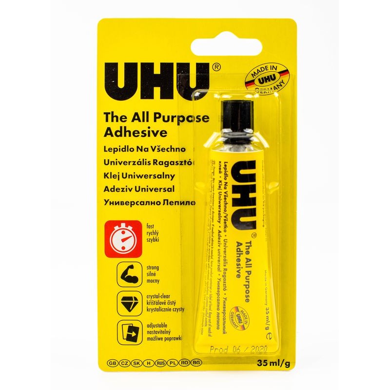 UHU Klej uniwersalny, szybki, mocny, przeźroczysty, do praktycznie wszystkich materiałów: porcelany, drewna, metalu, szkła, Plexiglasu, filcu, skóry, korka, tekstyliów, kartonu itp.