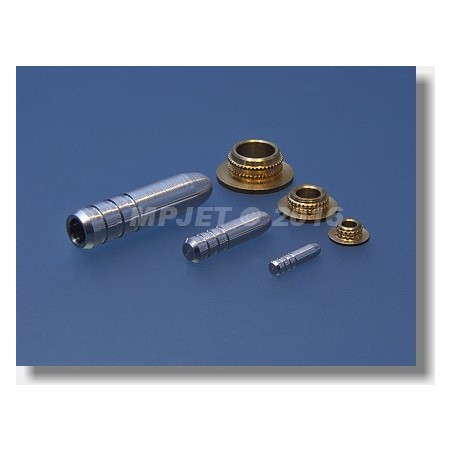 Duraluminiowy bolec z mosiężnym gniazdem, centrujący (stabilizujący) stosowany w modelach samolotów, które mają rozkładane skrzydła, usterzenie, itp.