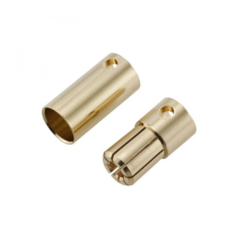 Komplet pozłacanych konektorów typu "banan" (wtyk + gniazdo) 6,5 mm o płaskiej (powiększonej) powierzchni styku.