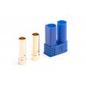 Komplet pozłacanych konektorów typu "banan" (wtyk + gniazdo) 5 mm z obudową do samodzielnego zarobienia. Złącza używane w połączeniach regulator - akumulator. Specjalna budowa konektora na goldach 5 mm pozwala pracować na dużych prądach oraz zabezpiecza użytkownika przed odwrotnym wpięciem wtyczki.