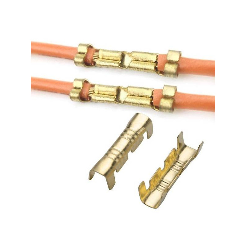Mosiężny łącznik przewodów nieizolowany do łączenia przewodów o przekroju od 0,3 do 1,5 mm2. Przewody elektryczne są zaciskane końcówką w kształcie litery U tworząc trwałe połączenia.