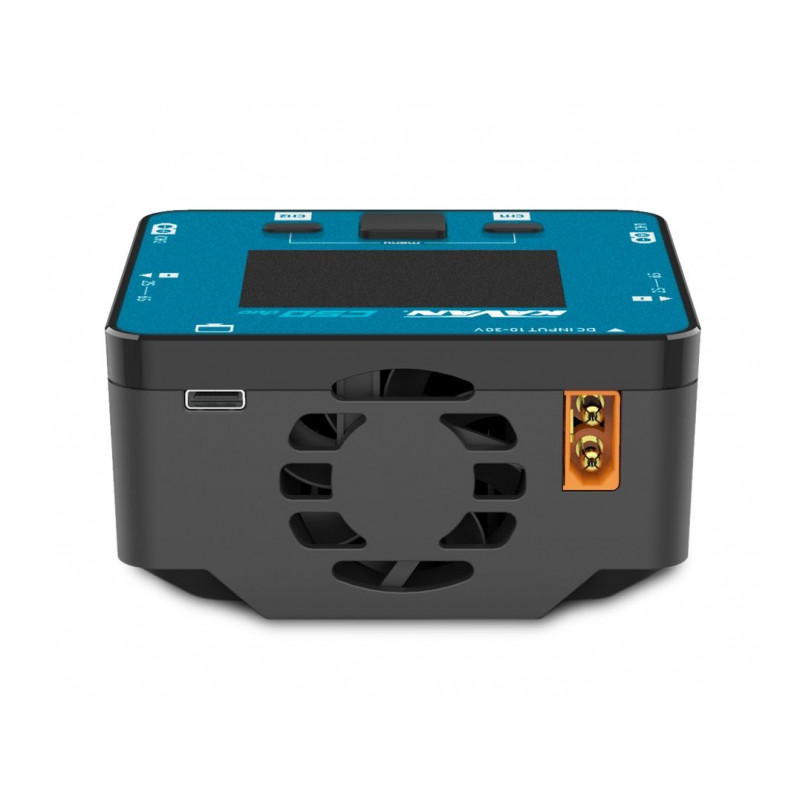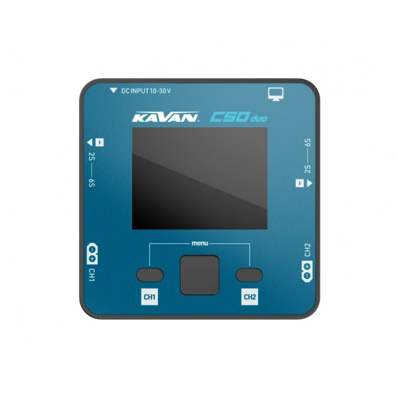 Miniaturowa dwukanałowa ładowarka KAVAN C50 Duo 2x250W to inteligentna ładowarka zasilana z akumulatora samochodowego - stabilizowanego źródła sieciowego o bardzo prostej i przejrzystej obsłudze. C50 Duo pozwala na ładowanie popularnych typów ogniw (NiCd, NiMH, LiPo, LiHV, ULiHV, Li-ion, LiFe, Pb), dodatkowo jest wyposażony we wbudowane sześciokanałowe balansery, które zapewniają bezpieczne ładowanie litowych baterii. Ładowarka wyposażona jest w kolorowy wyświetlacz LCD oraz przyciski do programowania, które zapewnią Ci możliwość wygodnego i bardzo czytelnego ustawiania parametrów, kontroli oraz monitorowania postępu ładowania.
