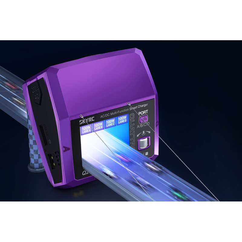 Czterokanałowa ładowarka SKY RC Q200neo 400W została zaprojektowana z myślą o zapewnieniu wszystkiego, co potrzebne do jednoczesnego ładowania czterech akumulatorów prądami „pod jednym dachem”, łącznie z zasilaniem sieciowym, przy prostej obsłudze i możliwości komunikacji z aplikacją SkyCharger. Q200neo umożliwia ładowanie i rozładowywanie popularnych typów ogniw (NiCd, NiMH, Li-poly, Li-ion, Li-Fe, Li-HV, Pb), dodatkowo wszystkie kanały wyposażone są we wbudowane sześciokanałowe balansery, które zapewniają wygodne ładowanie akumulatorów litowych.