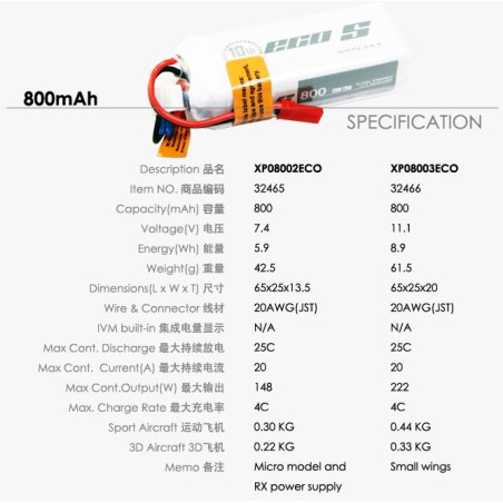 - Prąd rozładowania: 25C (20A) - seria ECO-S