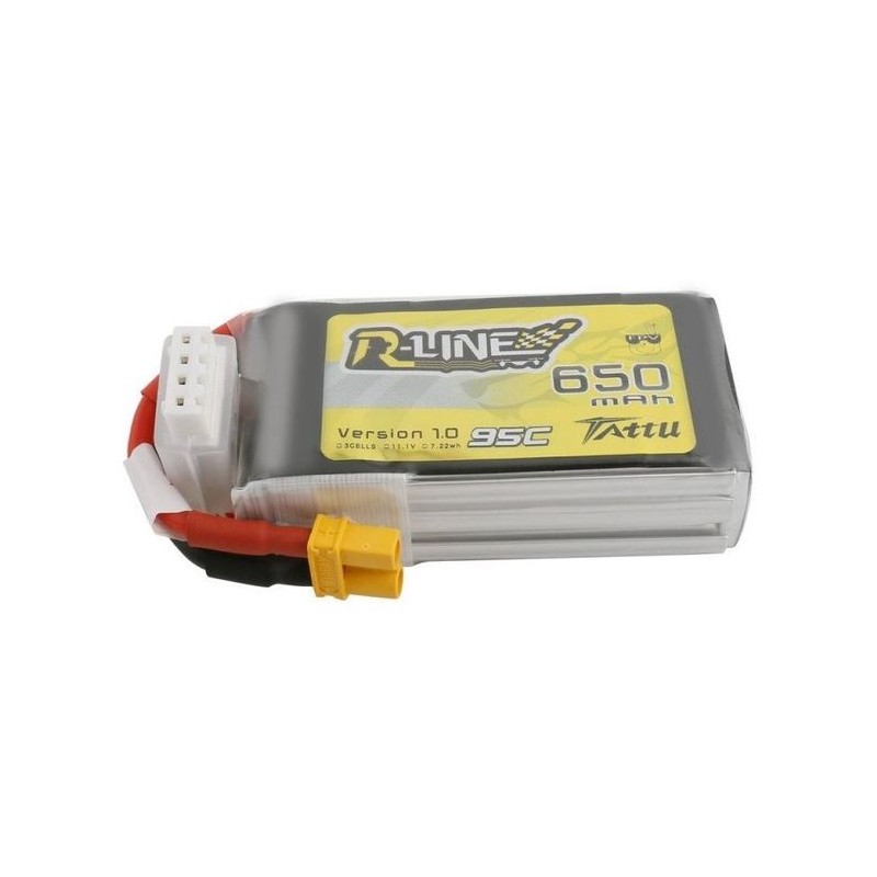 Akumulator LiPo Gens Ace 650mAh 11.1V z serii TATTU R-Line o prądzie rozładowania 95C. Edycja akumulatorów stworzona z myślą o wyścigowych dronach FPV.