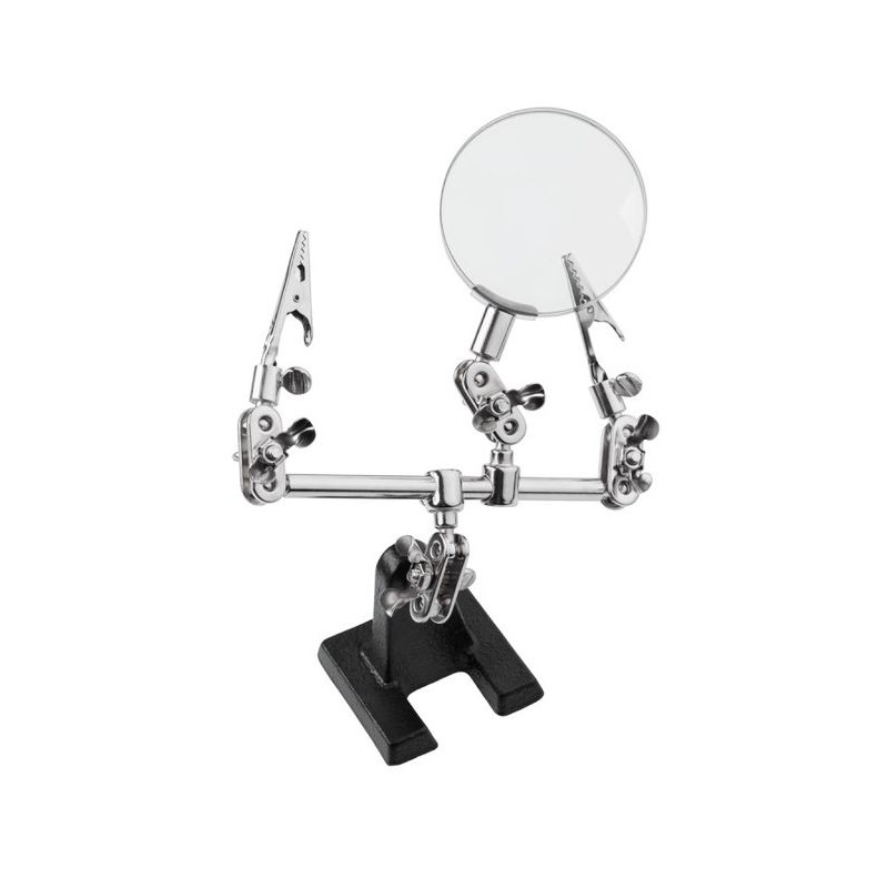 Zestaw narzędzi ułatwiający lutowanie, precyzyjne czynności instalatorskie oraz elektroniczne. Solidna żeliwna podstawa i lupa optyczna zapewniają precyzję pracy. Szerokie możliwości konstrukcyjne umożliwiają dostosowanie ustawień do własnych potrzeb.