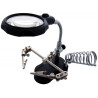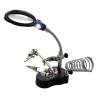 Trzecia ręka ZD-10MB to chwytaki "krokodylki" z dużym szkłem powiększającym, podświetleniem LED, spiralnym uchwytem na kolbę lutowniczą i żeliwną podstawą.