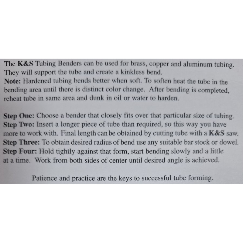 Zestaw sprężyn amerykańskiej firmy K&S do gięcia rurek wykonanych z aluminium, mosiądzu i miedzi.
