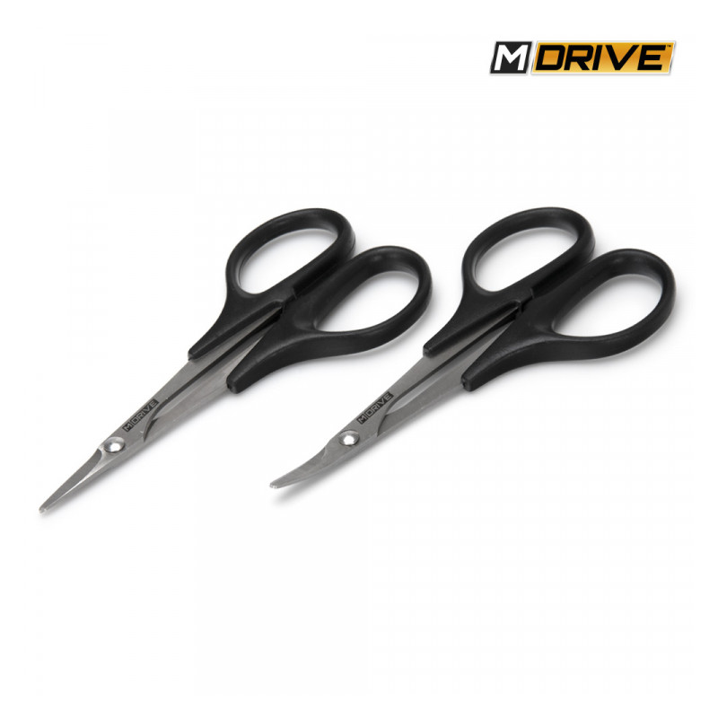 Wysokiej jakości zestaw zawierający nożyczki odpowiednie do cięcia tworzywa Lexan i nie tylko. Jedne nożyczki mają proste ostrza tnące, a drugie ostrza gięte (do cięcia linii niestandardowych).