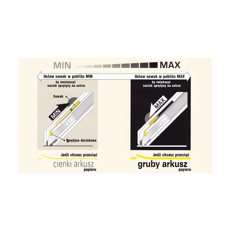 Ostrza OLFA są niezwykle ostre. Podczas cięcia i wymiany ostrza zachowaj szczególną ostrożność. Zużyte ostrza mogą być również niebezpieczne - przed wyrzuceniem zabezpiecz je wykorzystując np. pojemniki, w których dostarczane są nowe ostrza lub też skorzystaj ze specjalnych pojemników DC-2 i DC-4. Noże i ostrza OLFA przechowuj w miejscach niedostępnych dla dzieci !