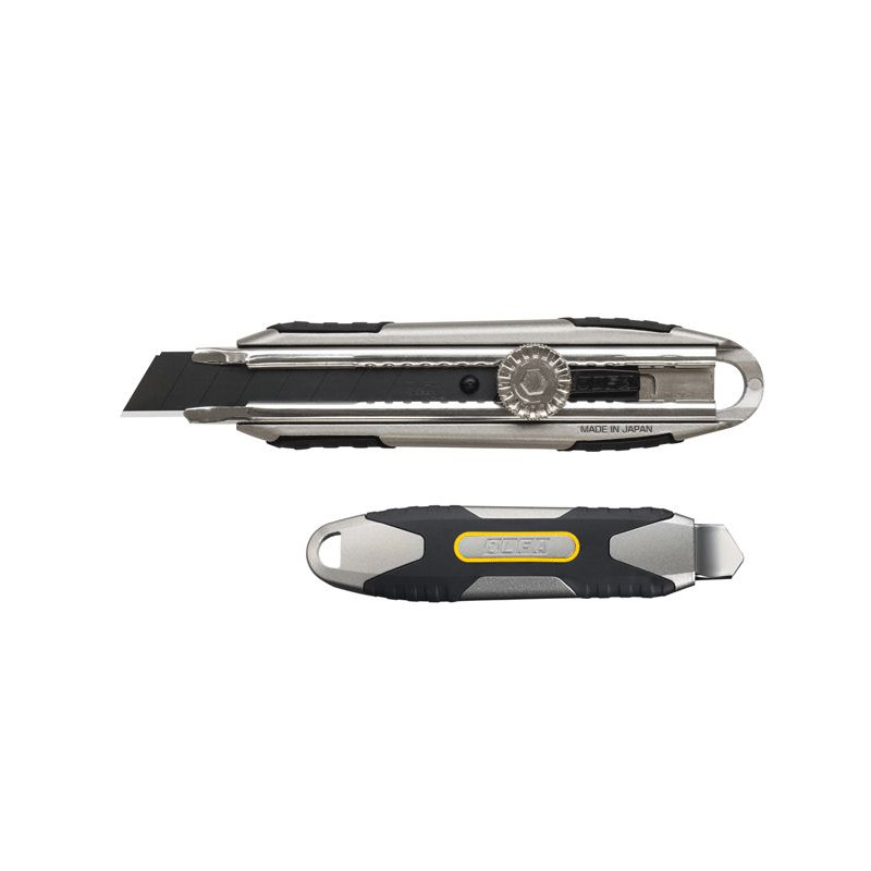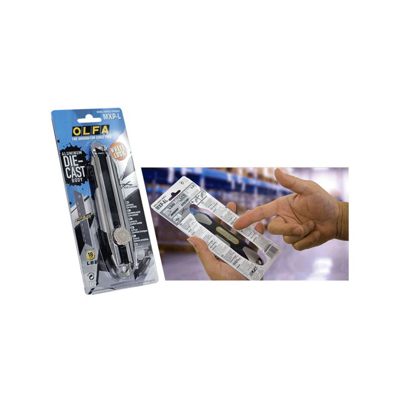 W uchwycie nowego noża zwraca również uwagę antypoślizgowa elastomerowa wkładka wykonana metodą dwukomponentowego wtrysku oraz hartowana i chromowana prowadnica ostrza. Powierzchniowe hartowanie i chromowanie prowadnicy zwiększa jej odporność na zginanie i odporność na zużycie. W modelu MXP-L wykorzystano wykonane z jednego kawałka metalu solidne pokrętło blokady ostrza. Satynowana powierzchnia pokrętła nadaje całej rękojeści wizualną harmonię stosowną dla uchwytu klasy premium.