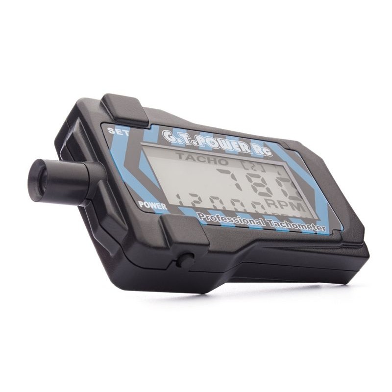 Miniaturowy tachometr optyczny do pomiaru prędkości śmigła z 2-9 łopatkami z wyświetlaczem LCD z przełączanym podświetleniem. Mierzy prędkość chwilową, rejestruje maksymalną zmierzoną wartość.