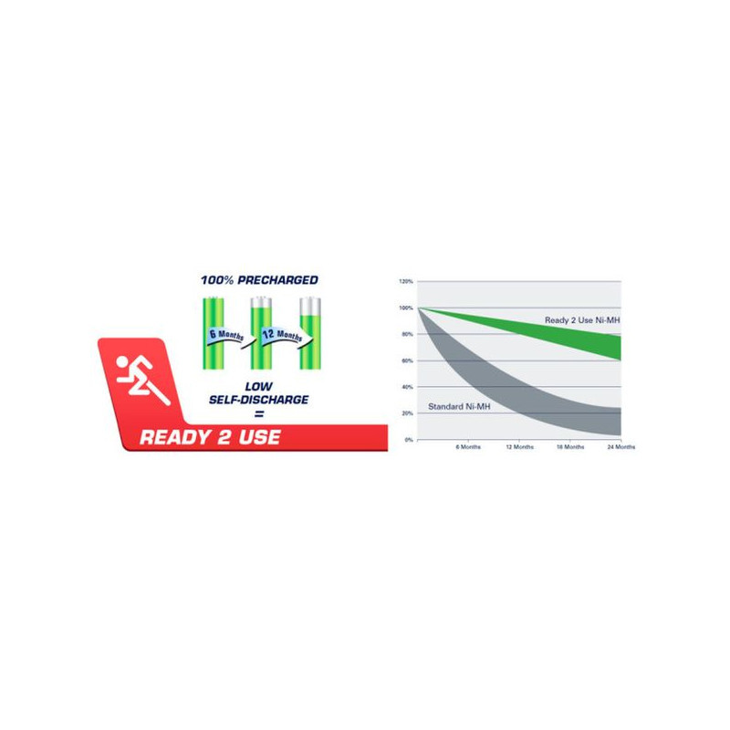 Akumulatory Varta Ready-To-Use to w obecnej chwili jedne z najbardziej cenionych akumulatorów nowej generacji (technologia znana z Sanyo Eneloop, czy Panasonic Infinium/Evolta). Charakteryzują się wysoką pojemnością i bardzo niską utratą pojemności podczas przechowywania.