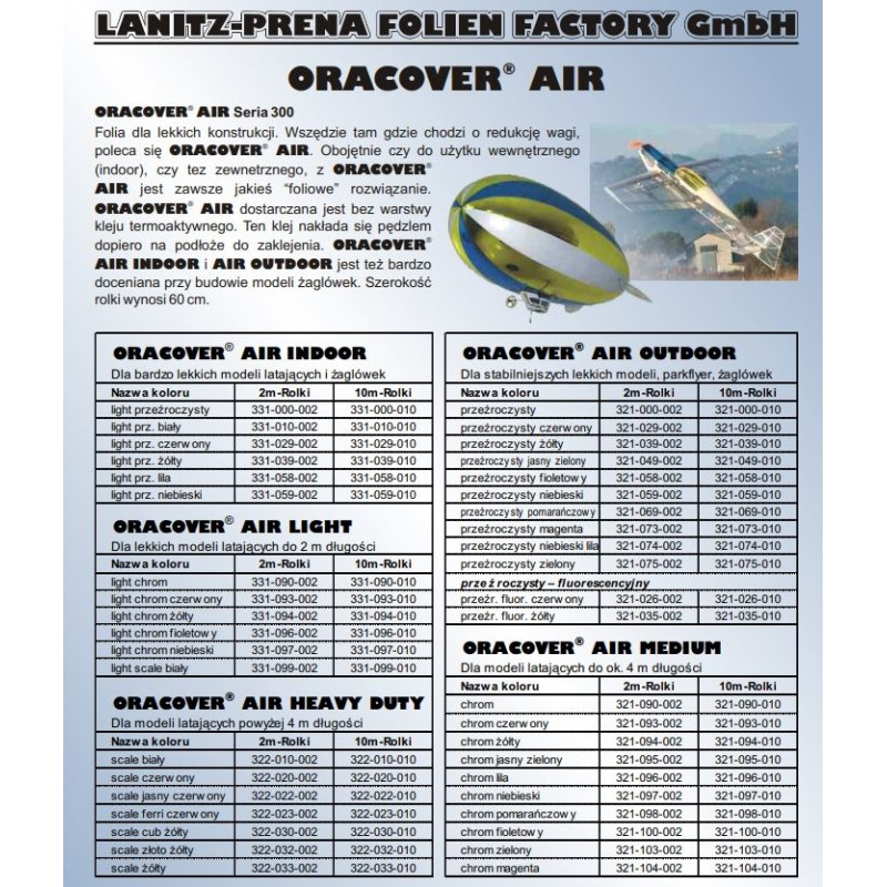 Folia ORACOVER® Air niemieckiej firmy Oracover Lanitz - Prena.