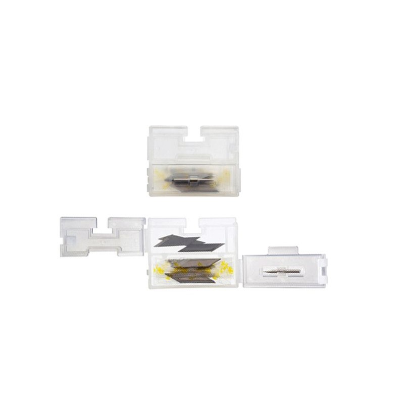 Dwuczęściowy pojemnik z ostrzami zapasowymi pełni również rolę pojemnika na zużyte ostrza. Zarówno szczelina do wrzucania zużytych ostrzy jak i przegródka, w której są one gromadzone dostępne są tylko wtedy, gdy otwarta jest przegródka z nowymi ostrzami. Na wewnętrznej stronie pokrywy pojemnika z ostrzami umocowana jest igła o długości 20 mm i średnicy 1,6 mm. Może być ona przydatna np. przy usuwaniu etykiet, do znakowania plastikowych modeli czy też trasowania.