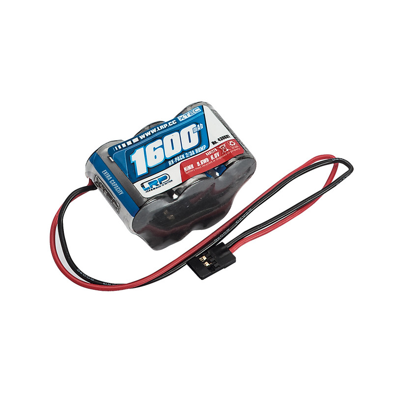 Wysokiej jakości pakiet XTEC RX z selekcjonowanych ogniw NiMH w wymiarze 2/3 niemieckiej firmy LRP (do zasilania odbiorników i serw - elektronika pokładowa).