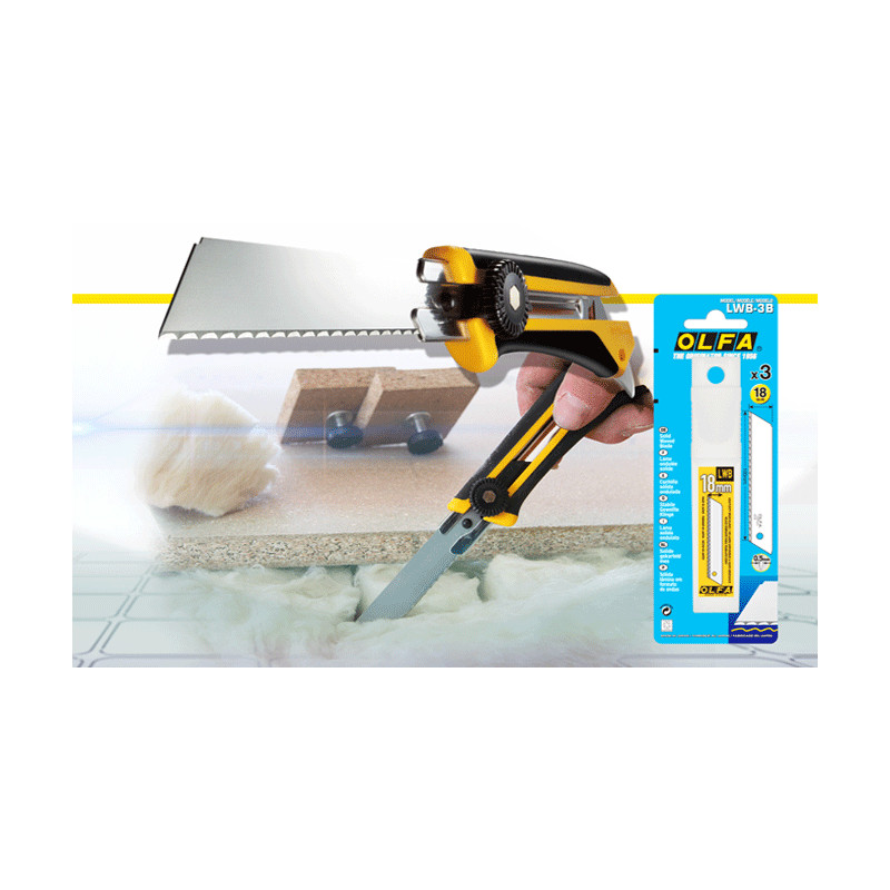 Ostrze LWB pasuje do wszystkich rękojeści OLFA na ostrza 18mm z tym, że z uwagi na charakter cięcia bardziej odpowiednie będą rękojeści z blokadą ostrza przy pomocy pokrętła. W pakowanym na blisterze pojemniku znajdują się 3 ostrza. Firma OLFA rekomenduje ostrza LWB dla profesjonalistów.