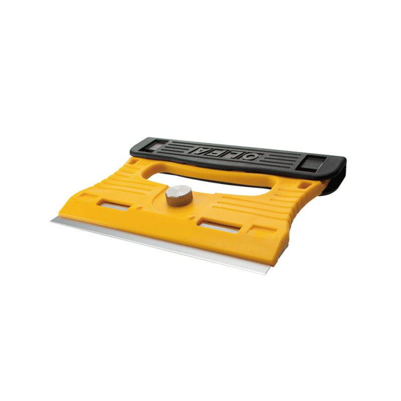 Po zdjęciu czarnej osłony ostrza, można ją nasunąć na drugą stronę uchwytu zwiększając jego grubość (14mm) i wygodę użytkowania. Osłonę można przesuwać w lewo albo w prawo aby idealnie dopasować się do warunków skrobania. Specjalne wypustki znajdujące się wewnątrz osłony ostrza pomagają w utrzymywaniu się osłony w wybranym położeniu. Otwory z boków uchwytu pozwalają na przypięcie smyczy lub linki zabezpieczającej przed upadkiem narzędzia - ważne przy pracy na wysokości.